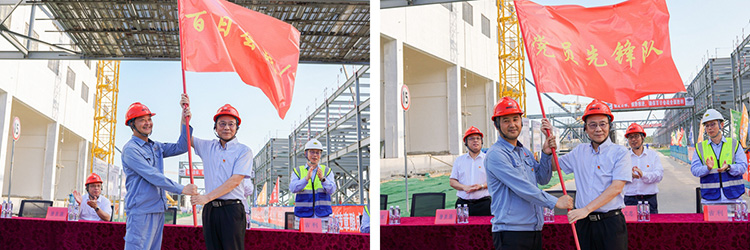 隨后,王立貴向揭陽項目建設(shè)團(tuán)隊和盛元達(dá)黨支部分別授予了“百日會戰(zhàn)”旗和“黨員先鋒隊”旗。鮮艷的旗幟在空中迎風(fēng)飄揚(yáng),宛如翱翔的雄鷹,昭示著揭陽團(tuán)隊在接下來的百日大會戰(zhàn)中將奮勇爭先、爭創(chuàng)佳績。