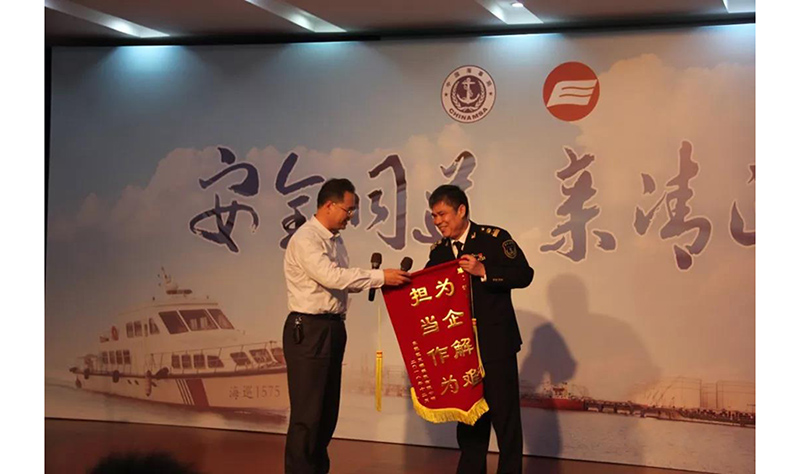 巨正源公司和東莞沙田海事處以黨建共建搭橋,充分發(fā)揮海事部門“紅色引領(lǐng)、藍(lán)色服務(wù)”作用,在巨正源大件設(shè)備運(yùn)輸、鴻源碼頭液態(tài)烴改建工程以及碼頭推行“三制管理”等方面取得了一定的成果。為了表達(dá)對東莞海事局、沙田海事處誠摯的謝意和鑒證一份親清正德的政商關(guān)系,曾一平董事長代表公司向沙田海事處贈(zèng)送了“為企解難 擔(dān)當(dāng)作為”的錦旗,并表示將努力提升黨建共建工作的成效,進(jìn)一步促進(jìn)企業(yè)的安全發(fā)展、和諧發(fā)展。