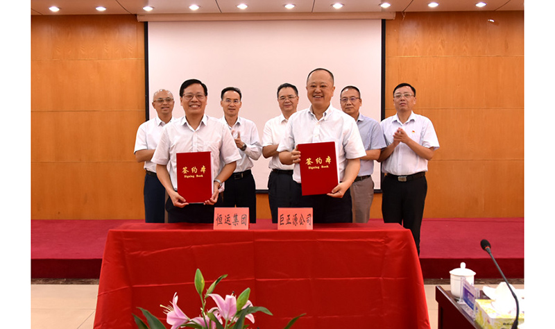巨正源副總裁黃鐵民與恒運(yùn)集團(tuán)副總經(jīng)理周水良代表企業(yè)簽訂戰(zhàn)略合作意向書(shū)