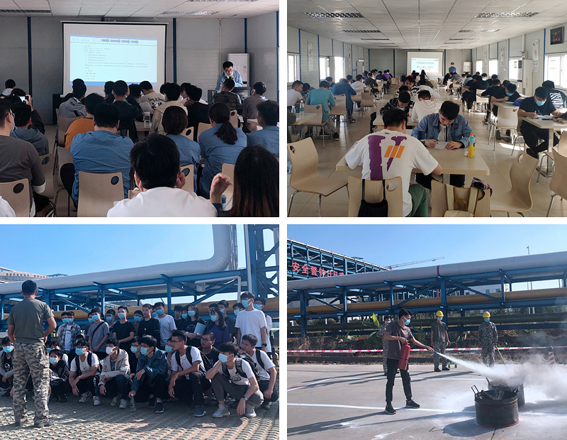此次培訓為期兩周,課程內容包括公司規章制度、企業文化、紀律考評、廉潔教育、聚丙烯項目介紹、各專業工藝簡介、職業衛生、安全管理基本知識、環境保護和清潔生產、行為安全管理、職防與安裝設備使用、消防知識與應急處置、滅火演習等。