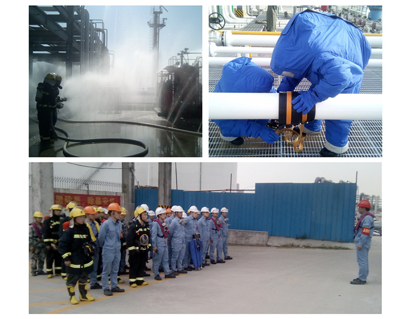 現(xiàn)場作業(yè)員發(fā)現(xiàn)泄漏后立即向班長和中控室報(bào)告,中控室立即指揮碼頭人員通知船方停泵關(guān)閥,并將碼頭的緊急切斷閥關(guān)閉。鴻源公司總指揮迅速啟動(dòng)應(yīng)急響應(yīng),現(xiàn)場指揮組織各應(yīng)急小組集合趕赴現(xiàn)場開展救援。17:06,滅火救援組鋪設(shè)水幕水帶、架設(shè)噴霧水槍對泄漏點(diǎn)進(jìn)行隔離及驅(qū)散可燃?xì)怏w;搶險(xiǎn)救援組組織人員佩戴空氣呼吸器著防凍服攜帶綁帶式堵漏工具到泄漏點(diǎn)進(jìn)行處置;安環(huán)部對周邊氣體情況進(jìn)行監(jiān)測;疏散警戒組立即疏散人員……各應(yīng)急小組緊密配合,至17:15,現(xiàn)場堵漏成功。經(jīng)檢測現(xiàn)場氣體正常,工程搶修組、物料回收組等應(yīng)急小組進(jìn)行善后處理。至17:25,現(xiàn)場完全處置完畢,應(yīng)急演練順利結(jié)束。