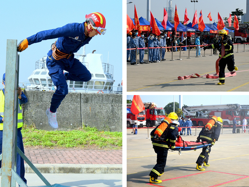 此次比武競賽共有25支駐島企業代表隊報名參加。競賽設置5個比賽項目,分別為防護裝備佩戴及水帶連接操、4×100米滅火接力、初期火災撲救技術、兩百米障礙、穿越煙道滅火救人操,都是貼近實戰的項目,既是對消防隊員們體能和消防業務技能的考驗,也檢驗了團隊協同作戰能力和應急練習成果。