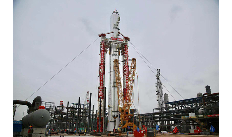 此次整體吊裝成功,不僅創造了國內甚至亞洲大型塔器類設備吊裝的新紀錄,同時還改變了以往大型塔器類設備需分段吊裝施工的方法。
